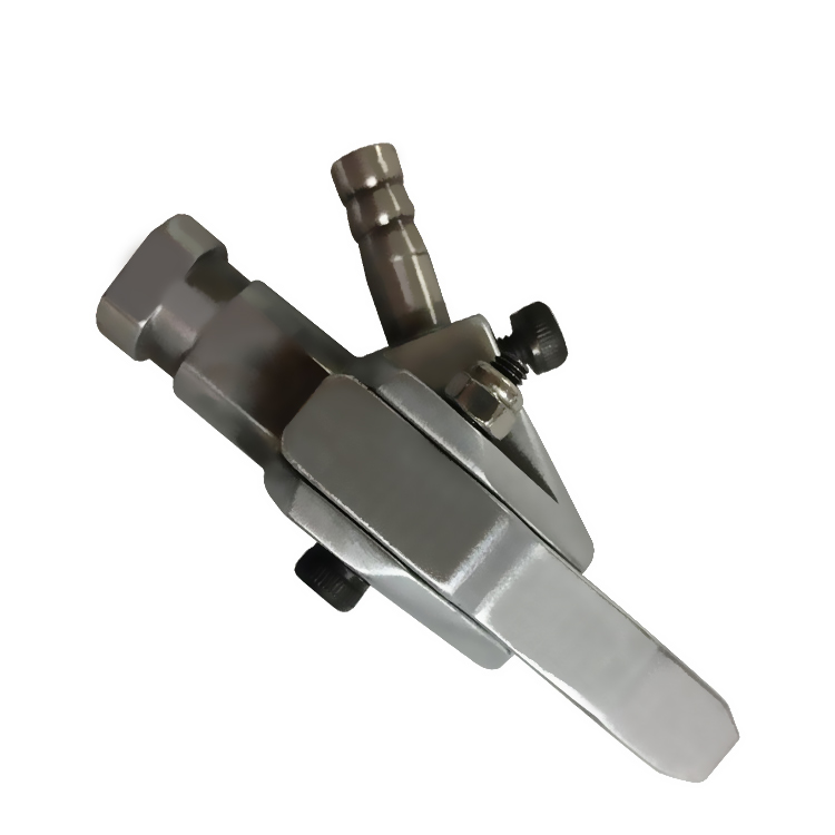 自動鎖螺絲機夾嘴結構主要由夾嘴座,夾片,氣管連接管,壓縮彈簧組成,常見的可分為手持夾和機用夾嘴兩大類,機用夾嘴有分為普通夾嘴,圓型尖夾嘴,吹加吸夾嘴,帶導管夾嘴等。其工作是原理:供料器通過分料器吹釘到夾嘴中使夾片夾持螺絲,保證螺絲相對垂直。